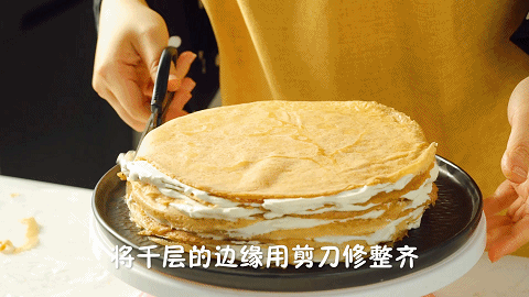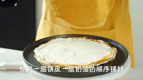 (奶油的涂抹只要薄薄一层就好,多了之后会把千层皮的口感盖掉)