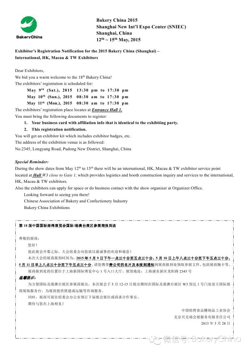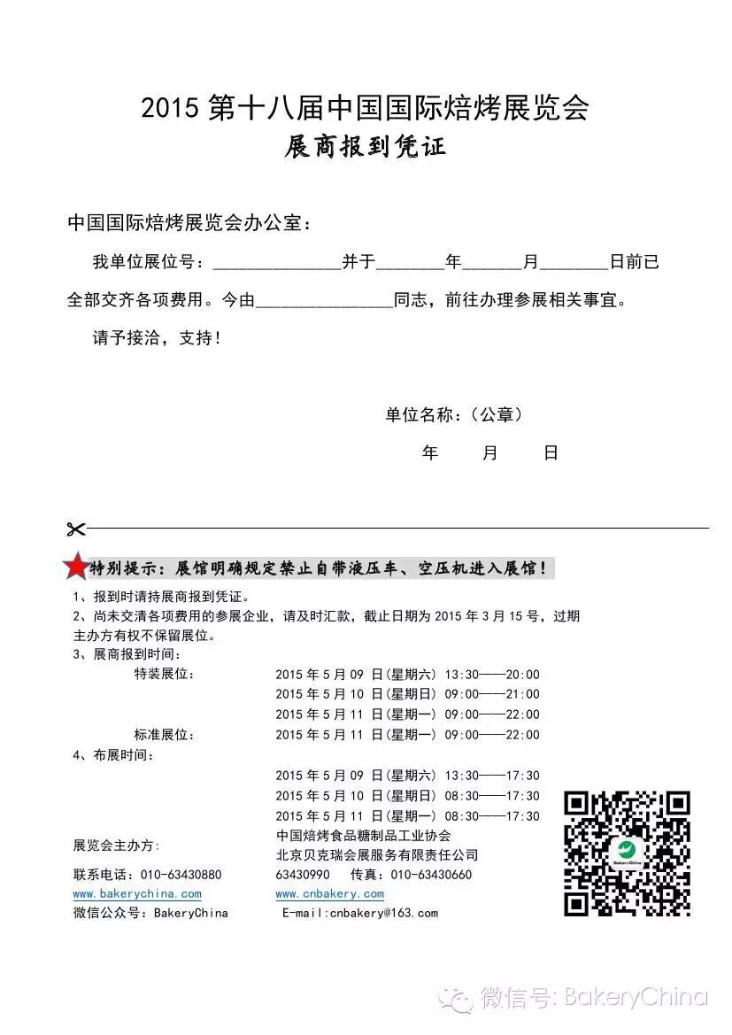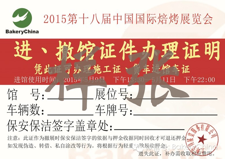 搭建商、展商报到程序2015第十八届中国国际焙烤展览会