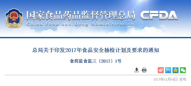 电子信箱:puhj@cfda.gov.cn附件:1.2017年食品安全抽检计划