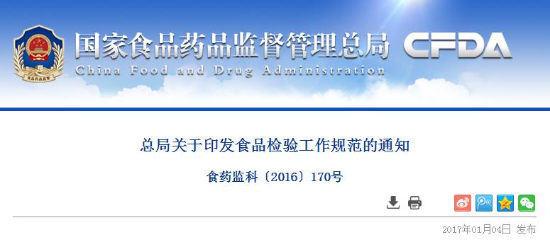 各省、自治区、直辖市食品药品监督管理局,新疆生产建设兵团食品药品监督管理局,各食品检验机构: