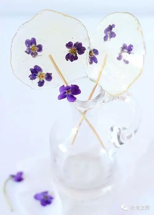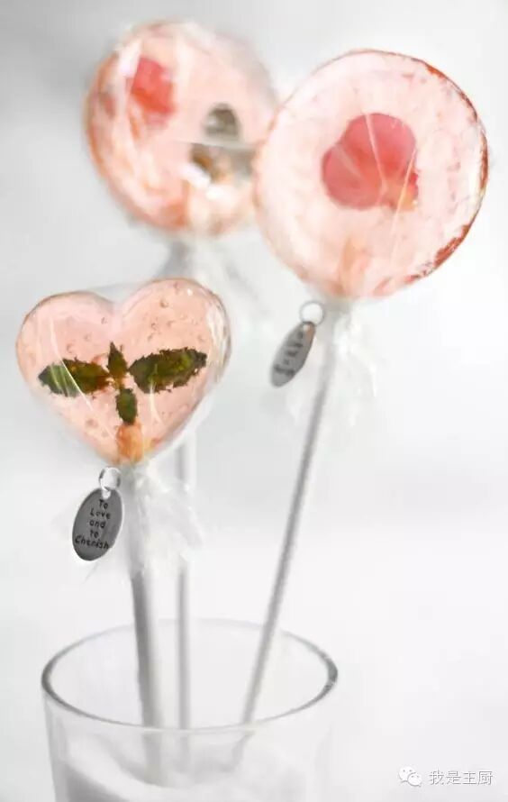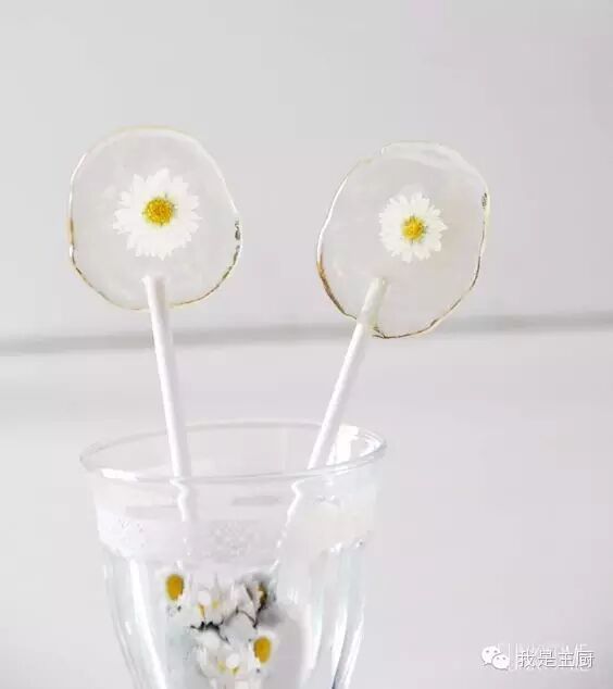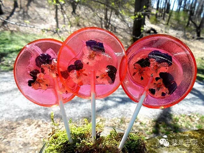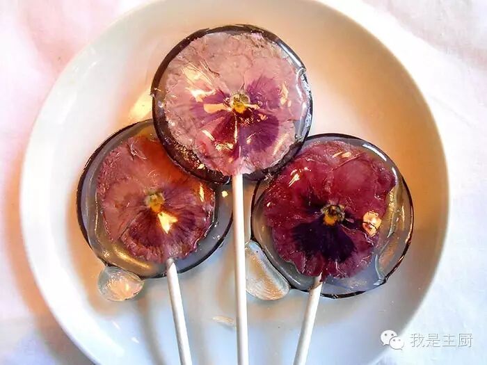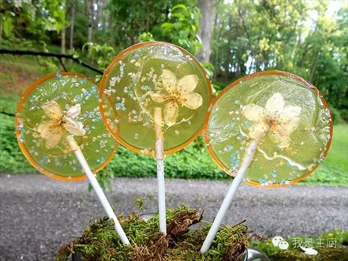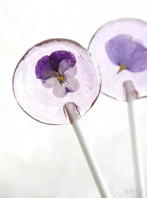 Sugar Bakers Bakery的店主 Janet Best,将棒棒糖变成了艺术创作,她将可食用的花材放入棒棒糖中,本来简单透明棒棒糖,成了花朵的展示厅,如同压花般的花朵被凝结在棒棒糖之中。