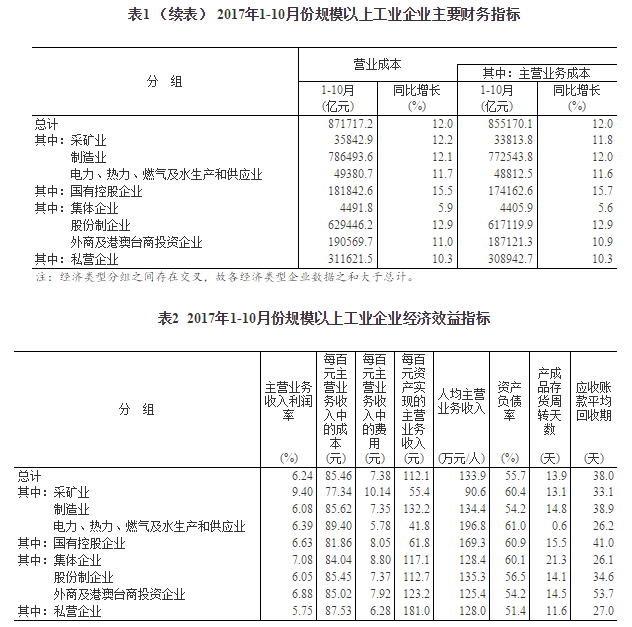 10月末,规模以上工业企业应收账款13.5万亿元,同比增长8.4%;产成品存货41908.2亿元,增长9%。