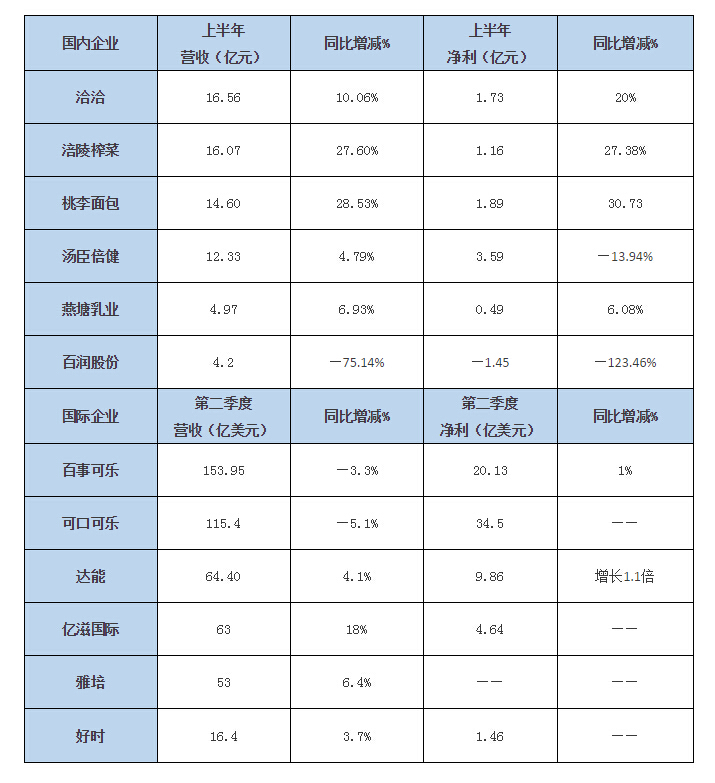 是赚是赔?可口、百事、洽洽...一表揽清上半年业绩大数据!