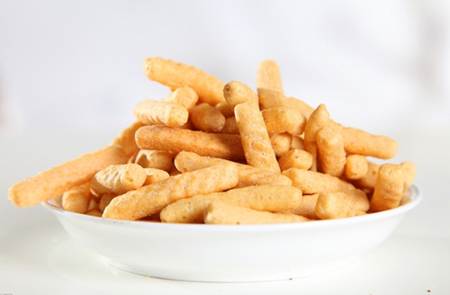“膨化食品的加工原理主要是利用原料受热或压差变化后使体积膨胀或组织疏松的过程,是一种物理加工工艺,根据膨化食品工艺特点,可以分为直接挤压型、油炸型、焙烤型、花色型等,目前还有气流膨化等新型工艺,膨化加工时一般是在谷物粉、薯粉、豆粉等原料中加入水,利用水在受热过程中的膨胀性和汽化原理带动原料受热膨胀,生产出疏松或松脆的食品。”朱念琳解释道,油炸膨化只是多种膨化工艺中的一种。