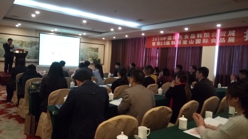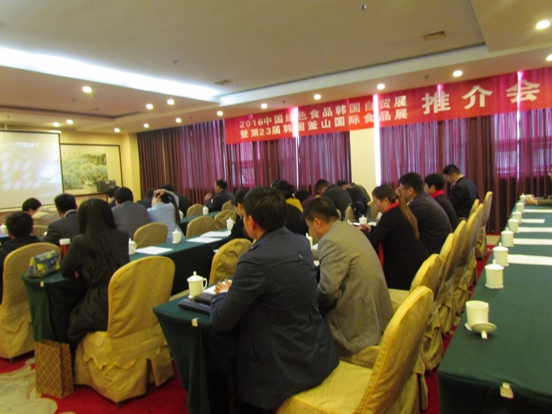 为让临沂市食品企业全面、深入地了解第23届韩国釜山国际食品展暨2016首届中国绿色食品韩国自贸展,2016年4月8日,由临沂市贸促会、临沂市食品焙烤糖制品工业协会、临沂商城管理委员会主办的“2016中国绿色食品韩国自贸展暨第23届韩国釜山国际食品展临沂推介会”在临沂市颐正园酒店隆重举行。