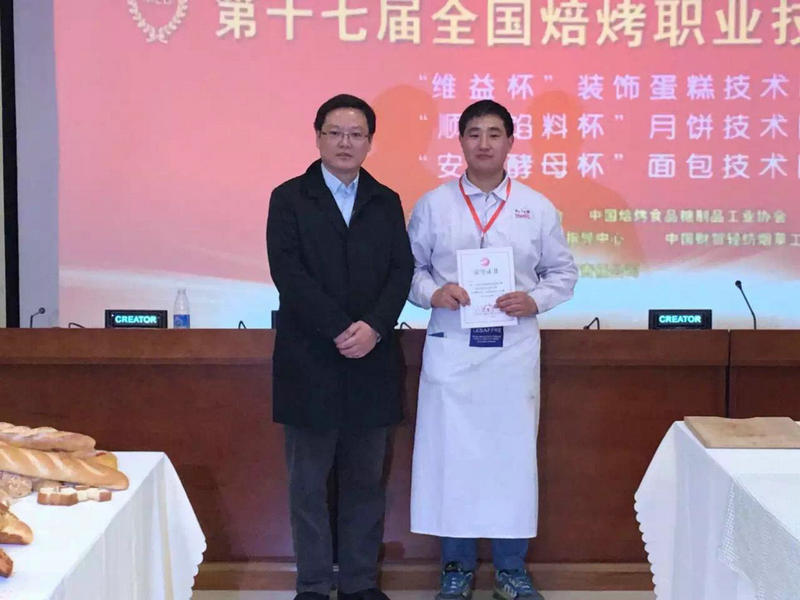 4月19日,第十七届全国焙烤职业技能竞赛北京选拔赛在北京轻工学院隆重举行,来自北京与山东的十二位选手进行了面包现场演示,“安琪酵母杯”全国面包技术比赛的冠军最终由北京宾堡的选手郭司昭获得。