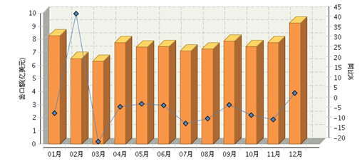图 2015年全国食品行业月度出口额及同比