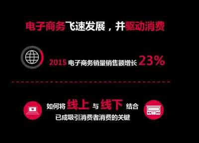 电子商务正在飞速发展,并驱动消费。根据尼尔森的数据显示,相比2014年,中国2015年电子商务的销售额拥有了23%的增长。在低线城市,消费者在一些电商平台上的花费甚至超过了其可自由支配收入的四分之一。