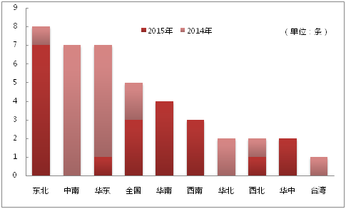 2、2015年所在的东北、华南、西南一带的食品舆情事件数量猛增