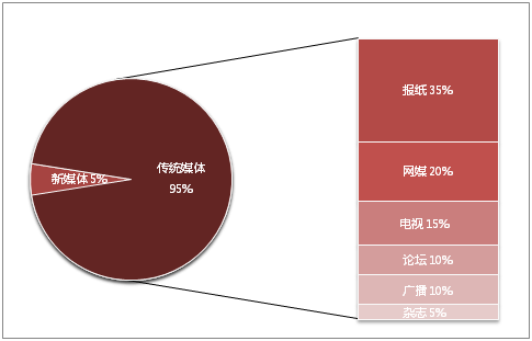 4、2015年食品传播渠道主要以传统媒体为主