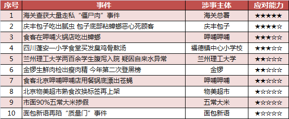表2 2015年中国食品行业舆情应对能力排行