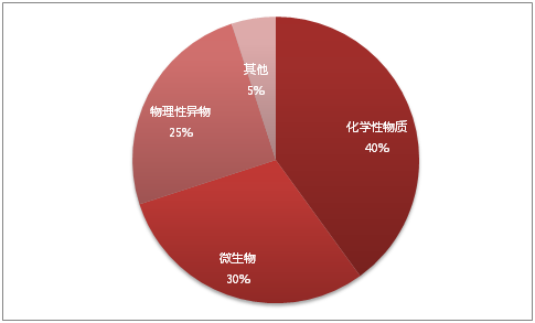在众多产生食品安全的因素中,化学性物质成为了2015年食品安全的主要因素之一,占比40%;其次,是微生物问题,占比30%;再次,是物理性异物,占比25%(见图6)。其中,微生物问题主要表现在餐饮企业对食品卫生把控不够严格上,用通俗的话讲,食品企业缺乏良心经营,尤其以学校食堂安全问题凸显。