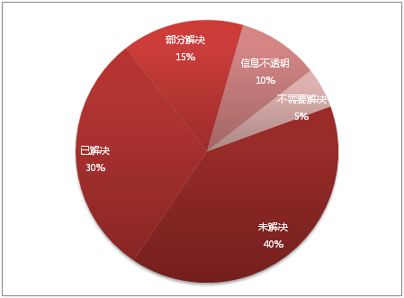 食品安全一直是消费者心头的敏感区,宁信其有,不信其无。据红麦统计,仍有40%的事件还未解决;已经解决的只占到30%;部分解决的占比15%(见图7)。