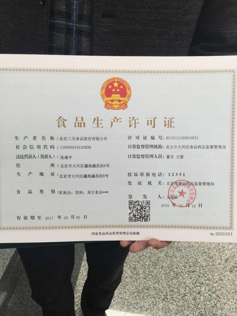 记者注意到,新版食品生产许可证书增加了企业外设仓库等企业生产信息和日常食药监督管理人员信息,同时新添了二维玛,实现了许可证书信息的在线识别。新版食品生产许可证书编号也随之进行了变化,由“QS+12位阿拉伯数字”,变为“SC+14位阿拉伯数字”,食品“QS”标志也已取消。记者了解到,市食品药品监督管理局发布了《北京市食品生产许可管理办法(暂行)》(以下简称办法)并于11月1日正式实施。办法主要变化体现为“五取消、四调整”。市食药监局相关负责人介绍,“五取消”即取消了前置审批材料核查、取消了许可检验机构指定、取消了食品生产许可审查收费、取消了食品生产委托加工备案、取消了企业年检和年度报告制度。“四调整”即调整了食品生产许可主体,实行一企一证,整合了食品、食品添加剂和保健食品等特殊食品的许可程序和证书样式;调整许可证书有效期限,由3年延长至5年;调整了现场核查内容,获证企业在许可食品类别范围内增加新的食品品种明细以及变更、延续许可时声明生产条件未发生变化等情形可不再进行现场核查;调整了企业取得食品生产许可与企业营业执照的先后顺序,由原“先证后照”调整为“先照后证”。市食药监局鼓励北京食品生产企业主动将旧版食品生产许可证书更换为新版证书,并将在新版食品生产许可证书副本中明细表的备注栏内标注企业原有效的QS编号,同时为避免生产企业包装材料和食品标签浪费,减少企业损失,国家给予生产企业最长不超过三年的过渡期,即2018年10月1日及以后生产的食品和食品添加剂一律不得继续使用原包装和标签以及“QS”标志。