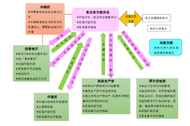 厚生劳动省和农林水产省互相协作,根据食品安全委员会的风险评估结果,分别在不同领域指定相关标准和措施,共同承担风险管理任务。