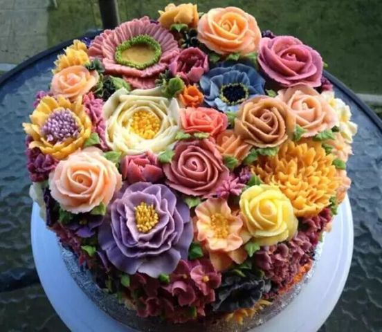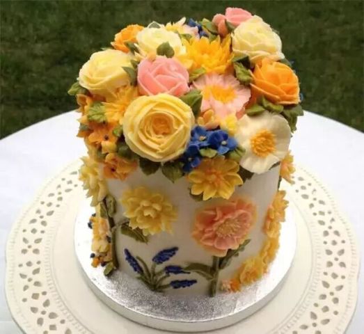 韩式裱花蛋糕花繁叶茂,造型华丽,色彩搭配合理,整体感强,在传统裱花的基础上更具立体感。