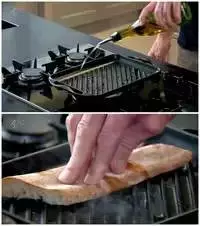 1. 在烤架上淋些橄榄油,烧热。