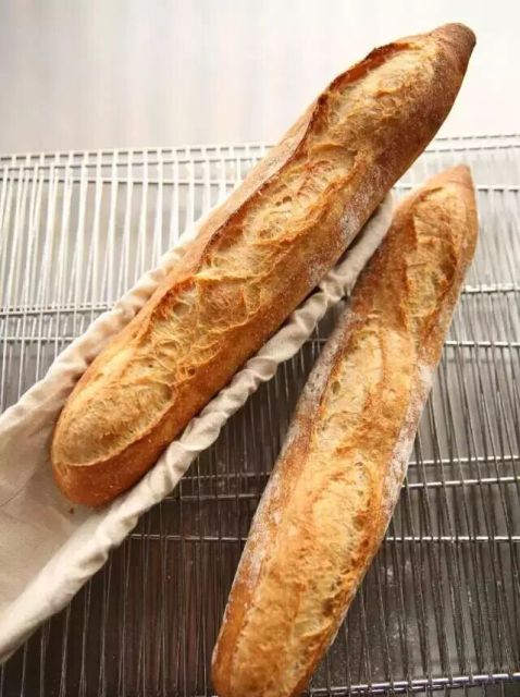 MOF 大师表示,地道法式面包的原料采用天然、纯净的法国小麦,通过长时间的发酵保证麦子的原本香味,外形上外脆内软,食用起来感觉韧性十足。