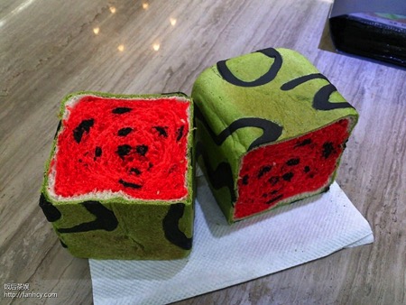 炎热的夏日里,人们总是更加青睐清凉多汁的瓜果,而对饱满干燥的面包提不起食欲。可是水果不顶饿,面包类的碳水食物才是充饥的根本呀,那么不妨将面包做成西瓜样儿吧,看上去就让人食指大动啦!