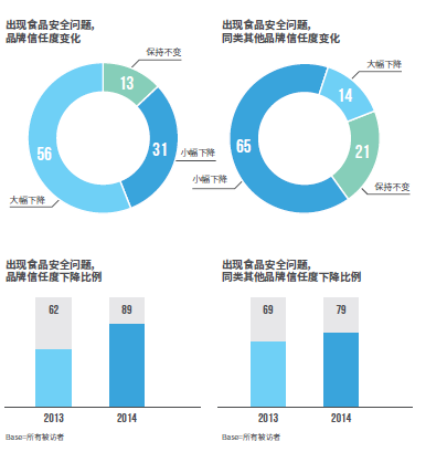 食品安全问题对品牌与行业发展有至关重要影响,而这种影响正在提升;食品安全问题发生后,消费者购买习惯也随之发生变化,主要包括选择更加安全购买渠道、选择有机 / 绿色食品、寻找替代品、多花钱购买高质食品等;家庭收入越高,消费者的购买习惯变化越明显;