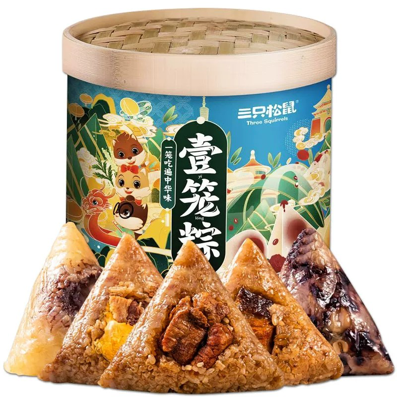 图片来源:乐纯三只松鼠今年推出了端午新品“壹笼粽”,将传统笼屉概念引入产品包装,同时兼顾南北口味,将流行于北京、台北、杭州、广州、成都等地的红袍豆沙粽、八宝粽、经典鲜肉粽、蛋黄鲜肉粽、藤椒鲜肉粽一笼打尽,融入松鼠IP插画,笼屉状外包装,造型精美别致,满足自食及送礼、员工福利等多场景消费需求。