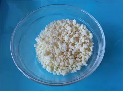 6、准备香酥粒(食材另备):10g黄油(不用解冻),5g细砂糖,8g低粉,混合搓匀,搓成小粒。
