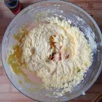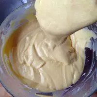 2. 鸡蛋打散逐次少量加入黄油糊中,每次加入后都要搅打到黄油糊平滑再继续加入