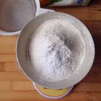 4. 将低筋面粉、玉米淀粉和泡打粉混合过筛