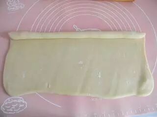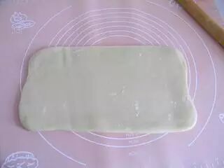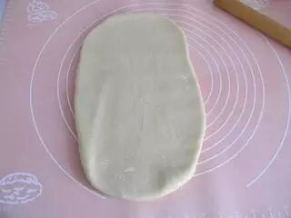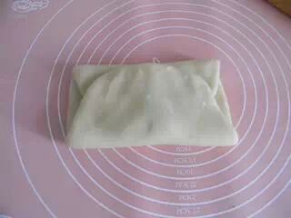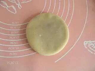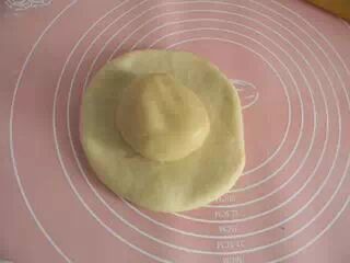 5、30分钟后,把油皮擀成大饼,放入油酥包上。