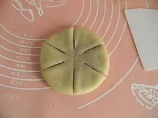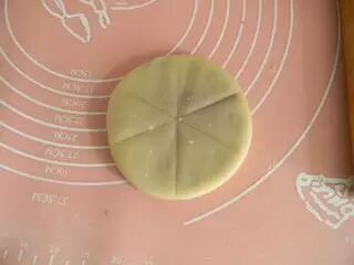 17、以圆心为基准分成六份,用刮刀轻轻压出痕迹。