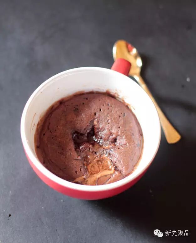 将牛奶和巧克力倒入杯子中,放入微波炉加热直至巧克力融化。然后倒入面粉、泡打粉和砂糖,用叉子搅拌直至融合。在混合物中放入一块巧克力,不要让其完全被淹没,在顶部倒上一勺热水,然后放入微波炉中加热1~2分钟。待混合物凝固后即可出炉,最后根据个人喜好挤上奶油就可以食用了。