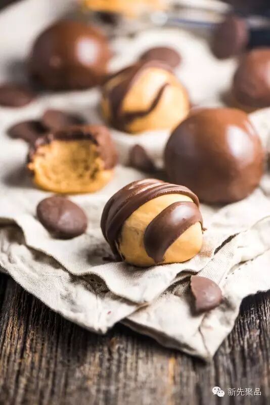 在碗中倒入花生酱、香草精和糖粉搅拌至混合,将混合物捏成小球的形状,冷却15~20分钟,待其变硬后包裹上融化的巧克力,等巧克力成型后即可食用。