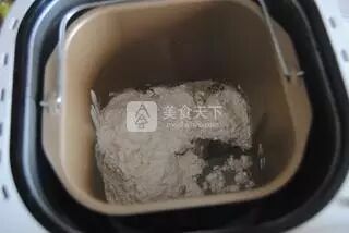 1、把高筋粉,低筋粉,盐,糖,酵母,清水全部放入面包桶内,启动和面键。