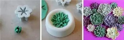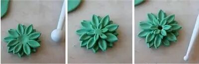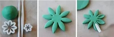 1、模具盖出花朵的基本造型,用勺子柄轻压出凹痕。
